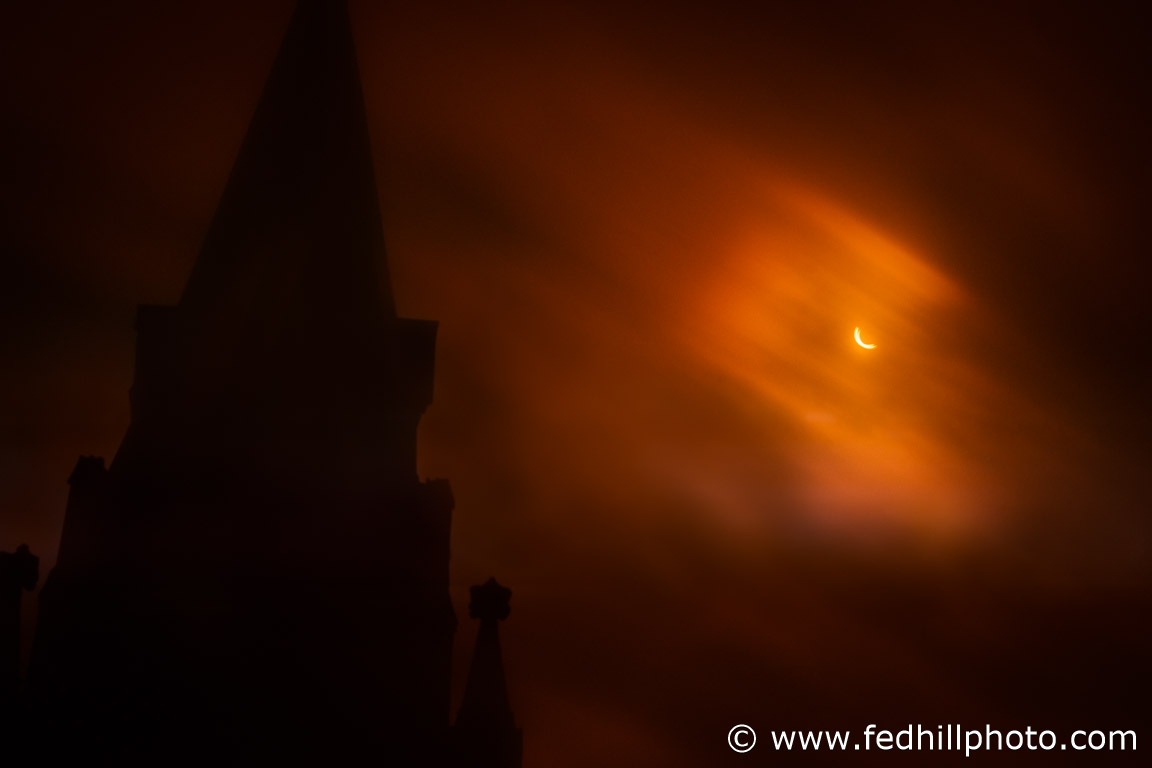 While I’ve never tried to shoot an eclipse, that didn’t stop me from jumping on the bandwagon. Baltimore wasn’t in the path of totality, but I think it was something like 89%. As a result, there was still a wonderfully eerie darkening of the sky during the event. I wanted to add some context so this shot includes the steeple of St Mary, Star of the Sea Catholic Church. I thought the steeple silhouette looked almost like a castle turret, creating a haunted feel to the image.